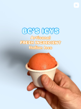 BC’s Icys are artisanal, vegan, gluten-free Italian ices made with fresh, seasonal ingredients. Inspired by my East Coast childhood and a life-changing journey after heart surgery and becoming a new parent, I’ve reimagined Italian ices with bold, unique flavors like Amaretti, Mango Sticky Rice, and Persimmon Earl Grey. We do custom and unique flavors as well!