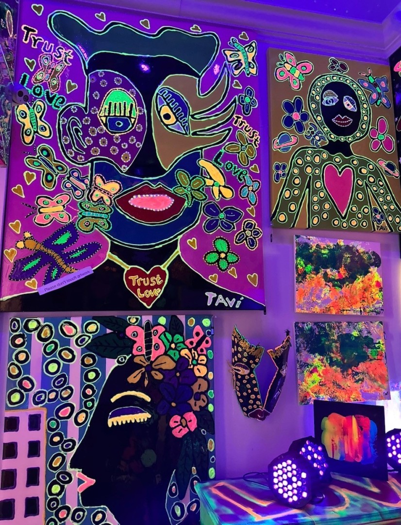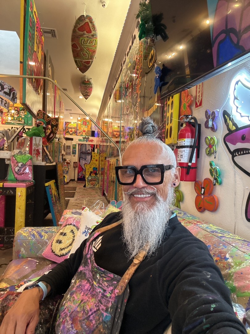 Known as the modern Picasso, Arellano Gustavo’s mantra has long been “Color is Freedom”. He grew up reveling in the colorful and vibrant traditions of his Native American and Latino heritage. Creating the spirit of his inner child, each color choice in his artwork is charged with meaning. TAVi art by Arellano Gustavo has been established in the United States arts scene since the late 1980s and his work has been featured in galleries in New York, Arizona, Miami, Chicago, New Mexico, and across California. TAVi’s whimsical style includes Arellano’s innovative use of “puffy paints”, acrylics, and resin creations, multimedia elements that seek to better embody “color” and bring emotions and inspiration alive on canvas. His unique artistic style is influenced by his love of the works of Andy Warhol, Keith Haring, and Picasso.