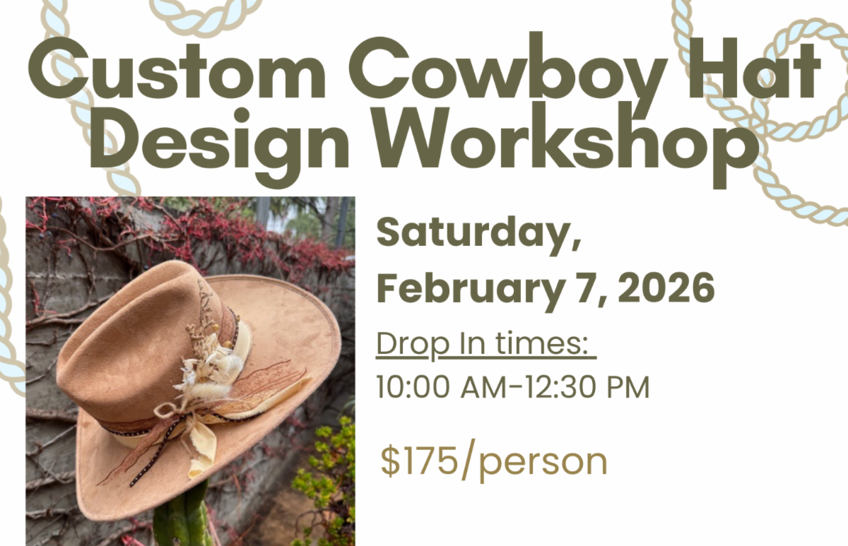 Rancho Los Alamitos will host a workshop to design your own custom cowboy hat. Tickets includes mimosa flights, brunch bites, and admission, including access to the historic gardens.