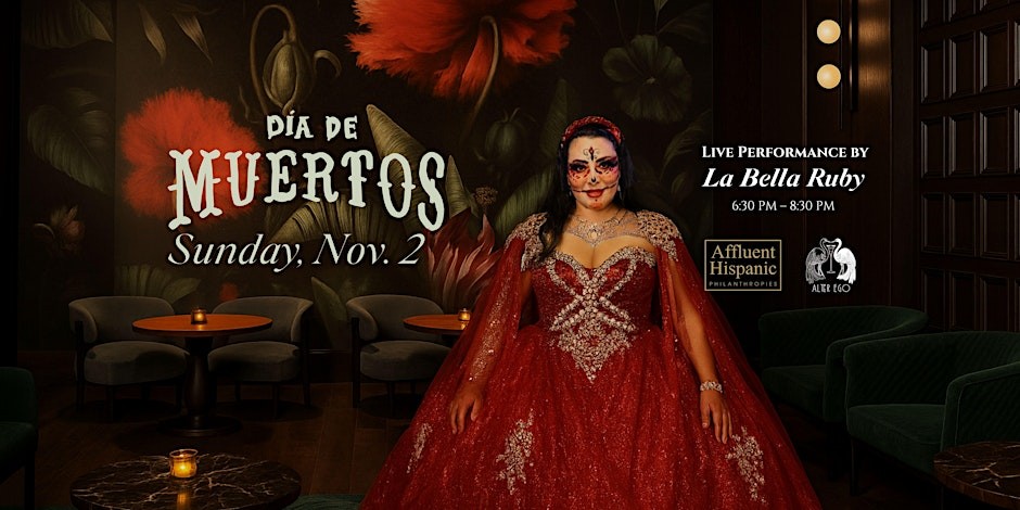Fairmont Breakers will host an unforgettable Día de Muertos celebration at Alter Ego in partnership with Affluent Hispanic Philanthropies. Experience the captivating live performance of La Bella Ruby from 6:30 PM to 8:30 PM, surrounded by the moody elegance of Long Beach’s premier entertainment lounge. Enjoy craft cocktails, soulful rhythms, and a tribute to life and remembrance in an atmosphere as vibrant as the night itself.