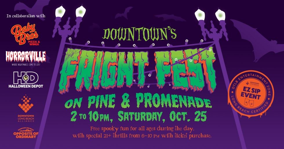 Downtown’s Fright Fest will take over Pine Avenue and The Promenade between Broadway and 3rd Street with the ultimate Halloween street party! For the first time ever, Pine Ave. transforms into an EZ Sip zone for Downtown’s Fright Fest on Pine & Promenade Oct. 25! 👻
