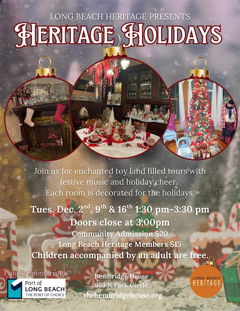 Welcome to Heritage Holidays at Bembridge House! Join us for a festive celebration of history and holiday cheer at the Historic Bembridge House. Step back in time and experience the magic of the season in this charming setting. Explore the beautifully decorated rooms and enjoy holiday music. The theme this year is Enchanted Toyland.