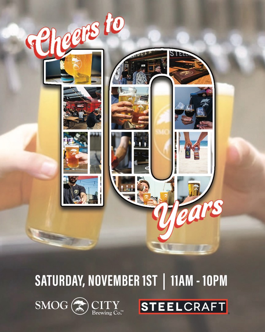 Cheers to 10 years! This Saturday, November 1, Smog City Brewing is celebrating the SteelCraft Long Beach taproom’s 10th Anniversary.