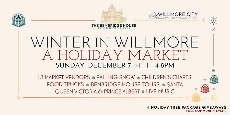 Enjoy ❄️ falling snow, 🎅 pictures with Santa, 🎶 live music from a local DJ, 🍴2 delicious food trucks, 🛍️ 13 local market vendors, 4 holiday crafts, and tours of the beautifully decorated Bembridge House.